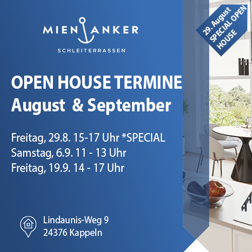 Von August bis September erweitern wir unsere OPEN HOUSE Termine in unserer Musterwohnung. Dann sind wir wie folgt für Sie da: